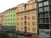 tradičního cihlového domu bez výtahu. Je v těsné blízkosti ulice