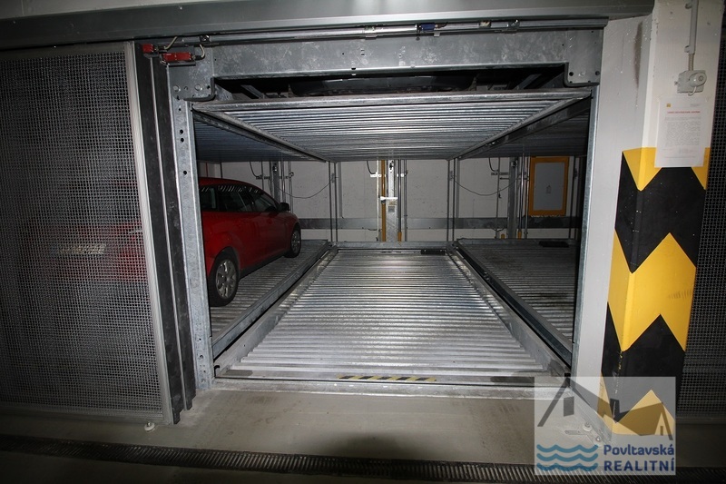 Stání se odemyká i uzavírá čipem včetně vjezdu do výtahu na dálkové