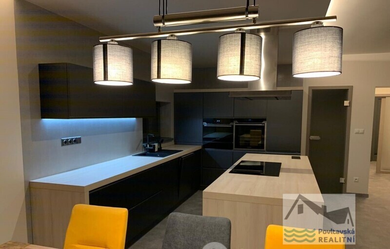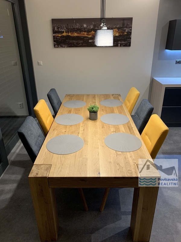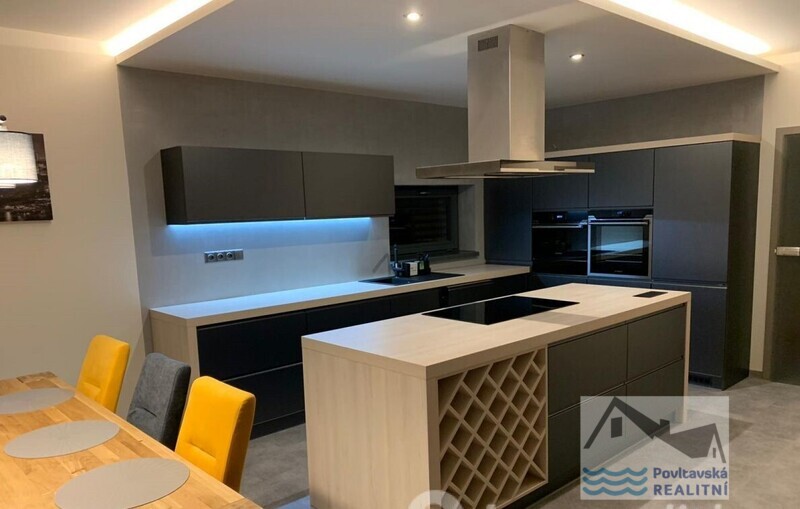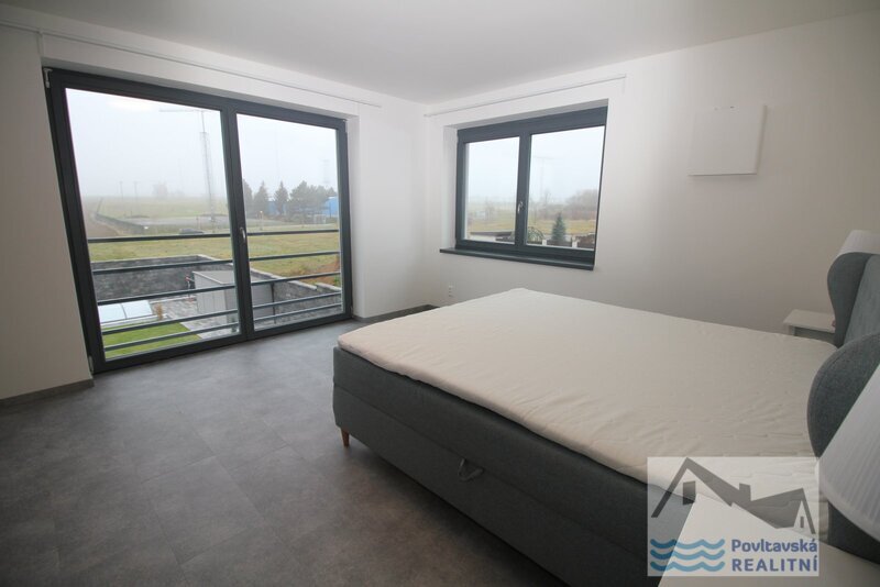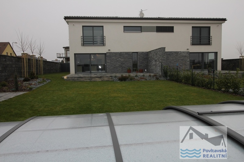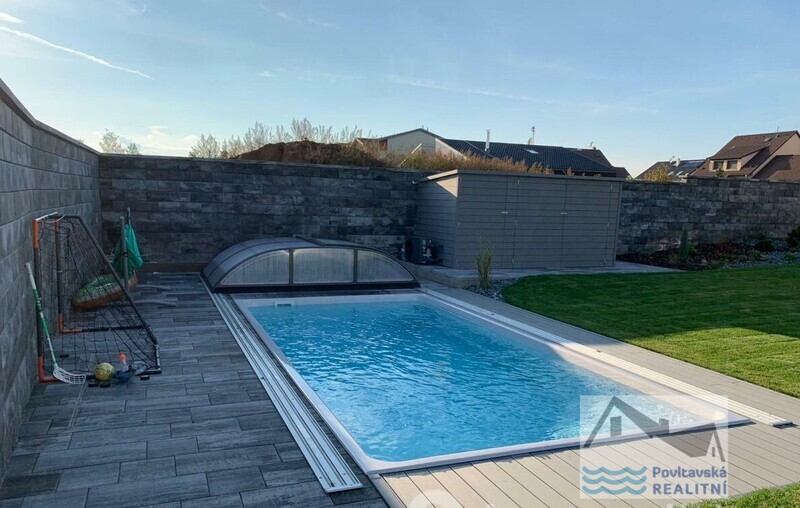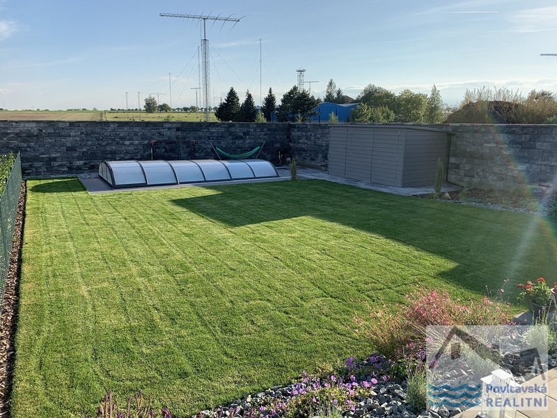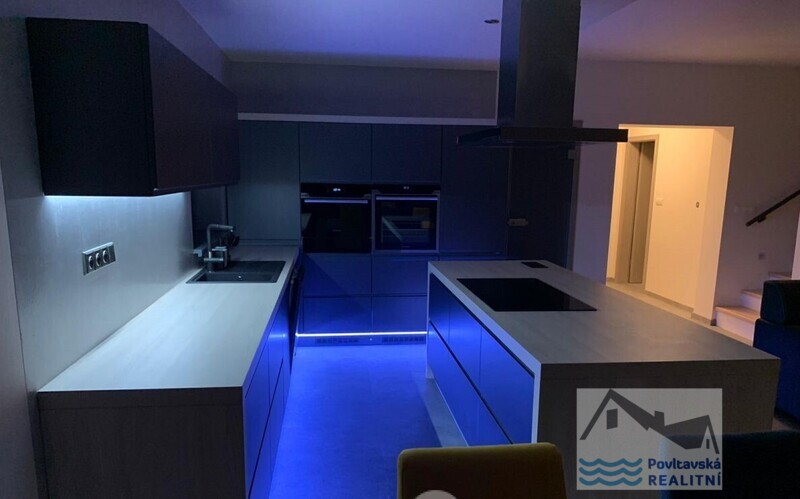 Nabízíme pronájem poloviny řadového rodinného dvojdomu 5+kk, 180 m2 obytné plochy v Horoměřicích u Prahy. Přízemí domu tvoří vstupní hala, šatna, pokoj pro hosty, prostorný obývací pokoj s plně vybavenou luxusní kuchyňskou linkou a jídelním koutem, z obývacího pokoje je vstup na terasu a zahradu s bazénem se slanou vodou. Dále je v přízemí prádelna s pračkou a sušičkou a samostatná koupelna. V prvním patře jsou 3 pokoje a dvě koupelny. V ložnici je rekuperace. Na podlaze vinyl a dlažba. V domě je podlahové vytápění, včetně topných žebříků v koupelnách. Venkovní žaluzie ovládací systém somfy vytápění honeywell inteligentní domácnoct. Zahrada má 424 m2 a před domem je vlastní parkovací stání pro dvě auta. Velmi klidná slepá ulice. Celý objekt je monitorován kamerami a výstražným zabezpečovacím systémem. Horoměřice jsou jen 2 km od Prahy a necelých 5 minut jízdy od letiště a mezinárodních škol v Praze 6 a 5. V Horoměřicích je plná občanská vybavenost – kavárny, obchody, bowling a fitness centrum, škola, školka, trh.